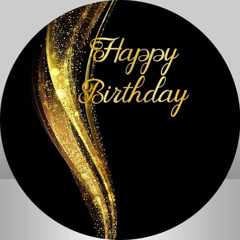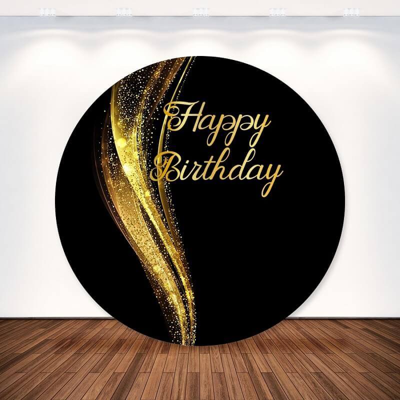 Black and Gold Happy Birthday Round Backdrop for Adult