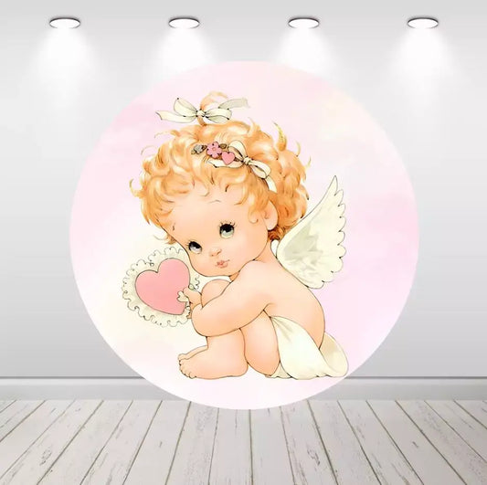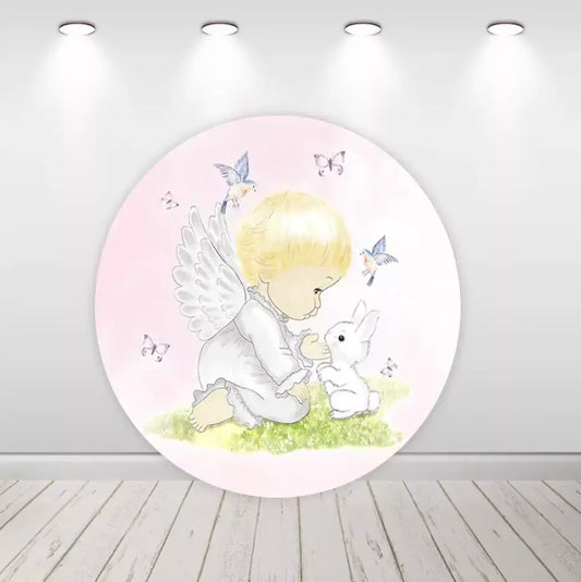 Angel Girl Baby Shower Baptism Round Backdrop Party Decor