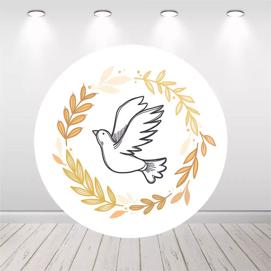 Angel Gold Pigeon Baby Shower Baptism Round Backdrop Cover