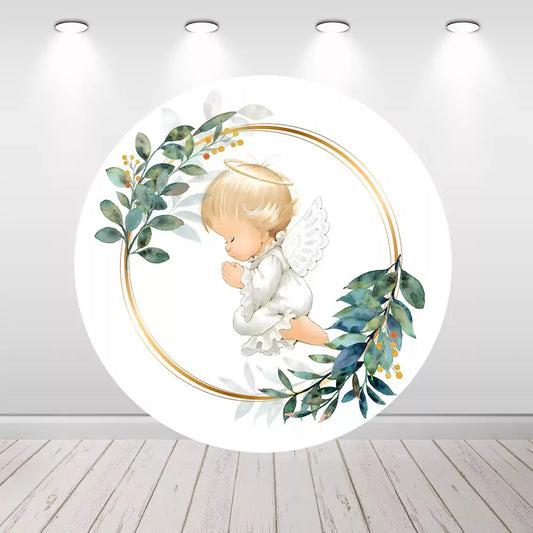 Angel Boy Baptism Round Backdrop