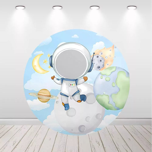 Astronaut Boy Baby Shower Birthday Round Circle Backdrop
