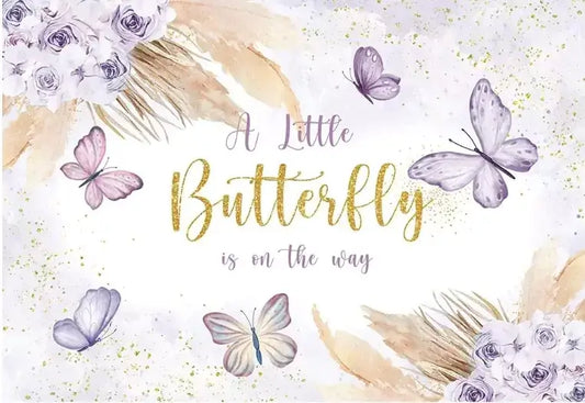 A Little Butterfly Is on The Way Backdrop Boho Flowers Baby Shower Background