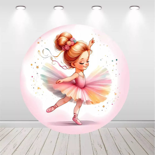 Ballet Girl Circle Backdrop Flowers Girls Birthday Round Background
