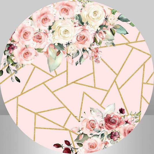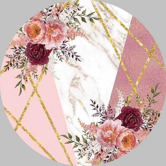 Pink Marble and Flowers Baby Shower or wedding Round Backdrop