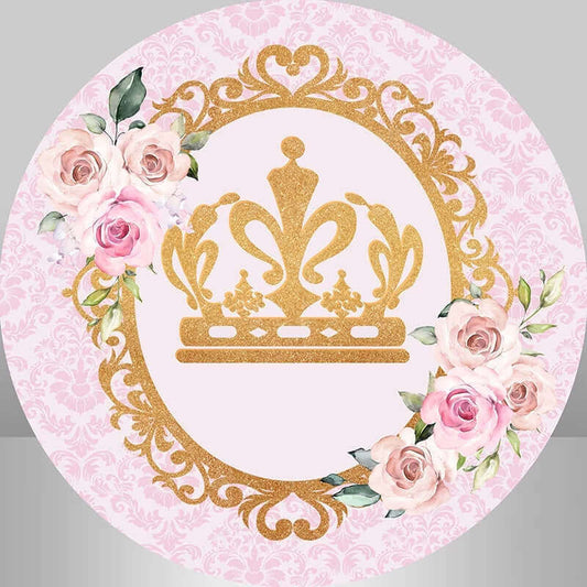 Princess Gold Crown Pink Flower Birthday Party Round Background
