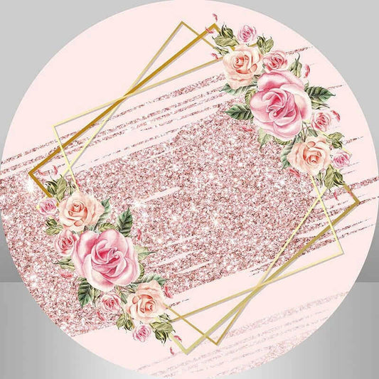 Pink Rose Gold Glitter Adult Birthday or Wedding Round Backdrop