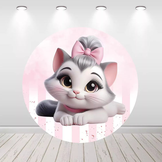 Cute Cat Party Round Backdrop for Kids’ Birthday