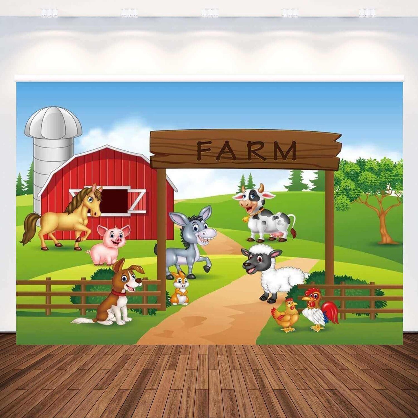 Green Lawn Animals Cartoon Farm Theme Kids Birthday Backdrop