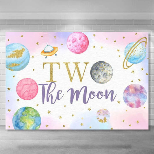 Two The Moon Universe Backdrop Outer Space 2nd Birthday Party Photography Background
