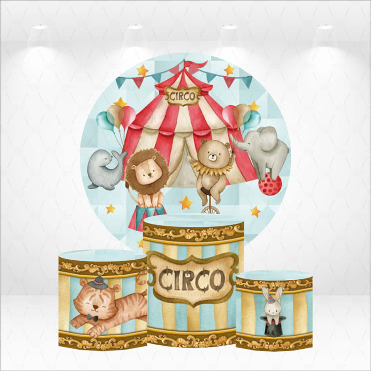 Circus Tent Animals 1st Birthday Round Circle Backdrop Cover Party Decor