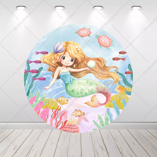 Underwater Mermaid Party Round Backdrop Girl Birthday Decor