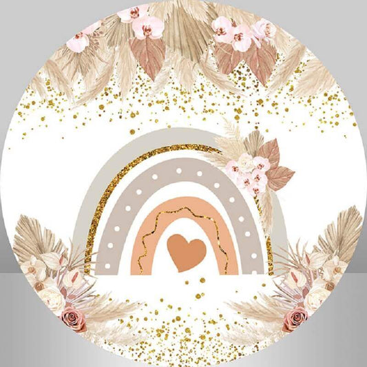 Boho Rainbow Glitter Brown Leaves Round Baby Shower Backdrop Cover