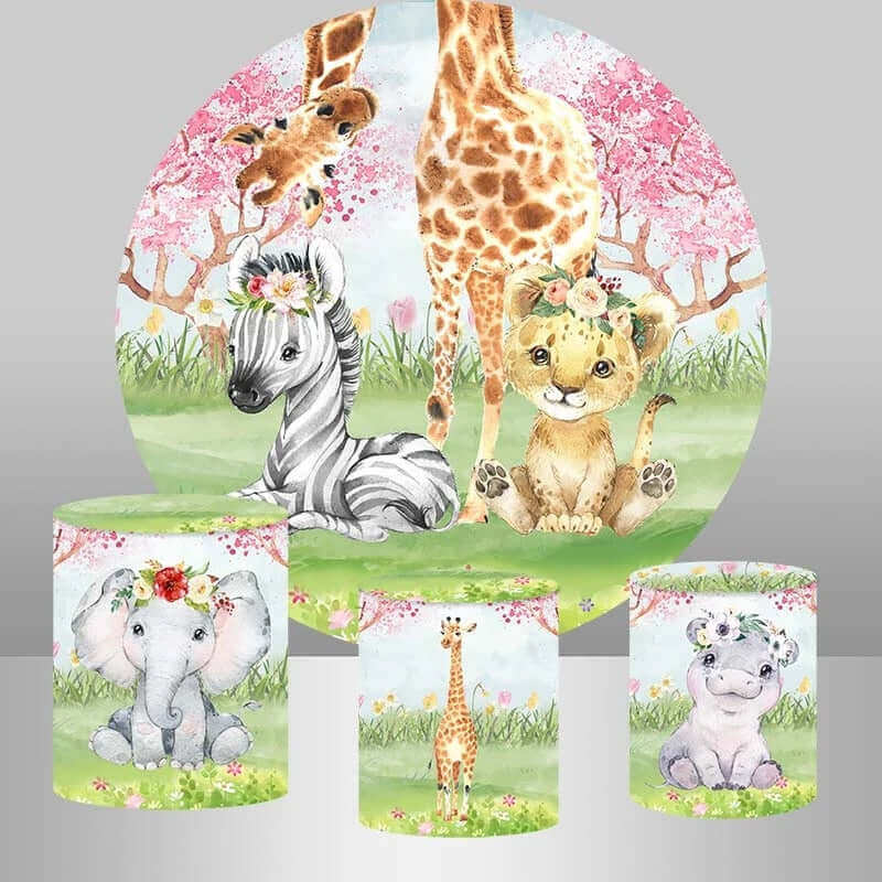Wild Animals Round Backdrop Cover and Cylinder Cover for Party Decor