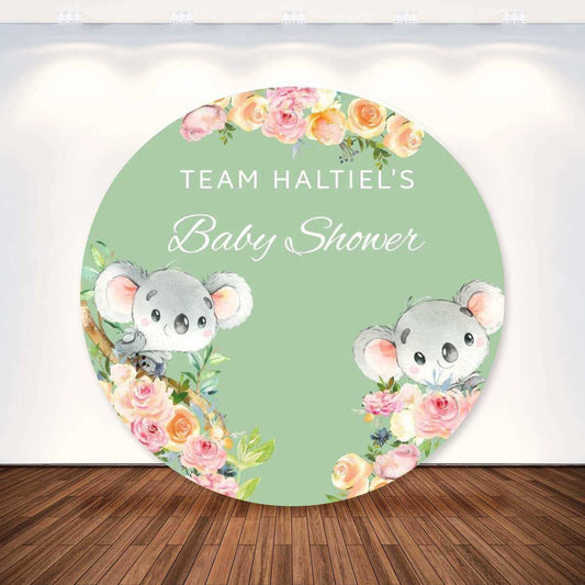 Green and Purple Bear Theme Gender Reveal Round Photography Backdrop