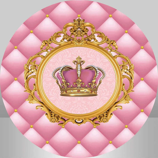 Pink Princess Crown Birthday Party Decoration Round Backdrop