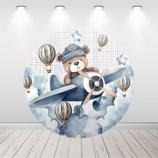 Bear Pilot Round Backdrop Kids Birthday Circle Covers