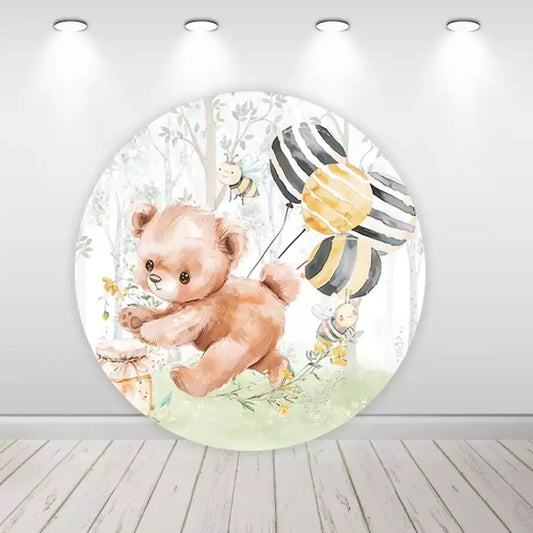Bear Bee Kids Newborn 1st Birthday Party Round Backdrop