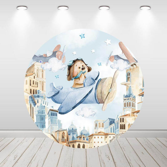 Baby Boy Airplane Bear Round Backdrop