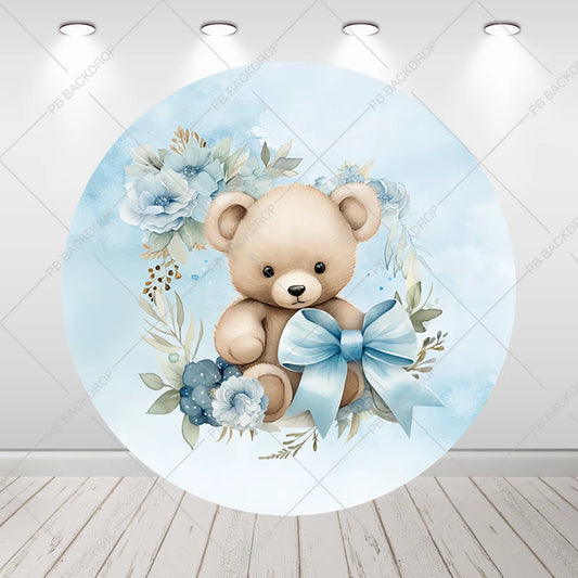 Baby Boy Bear Birthday Party Round Backdrop