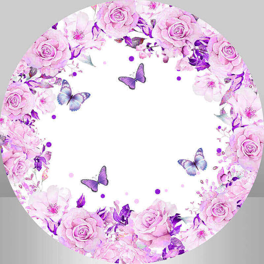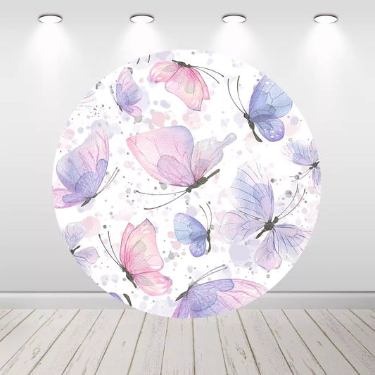 Purple Butterfly Birthday Baby Shower Round Backdrop
