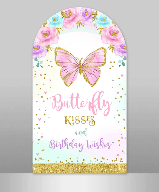 Floral Butterfly Kisses Baby Wishes Double-Sided Arch Backdrop Cover