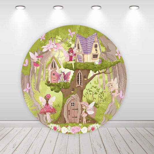 Fairy Girl Forest Birthday Party Round Circle Backdrop Wood Cylinder Covers