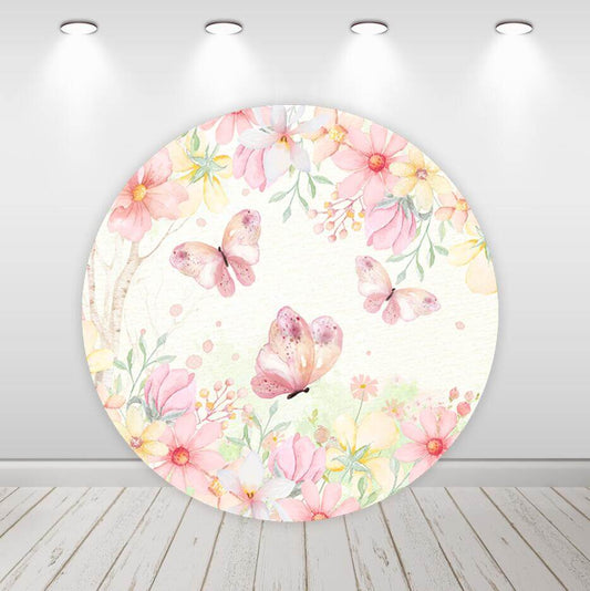Butterfly Pink Flower Girl Birthday Round Backdrop Cover