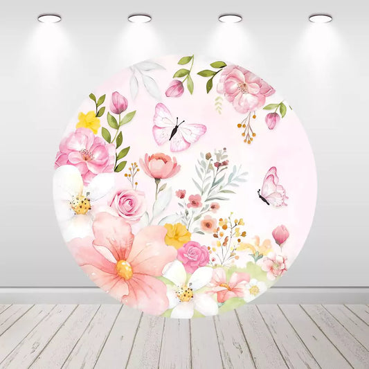 Pink Rose and Butterfly Event Round Backdrop for Celebrations