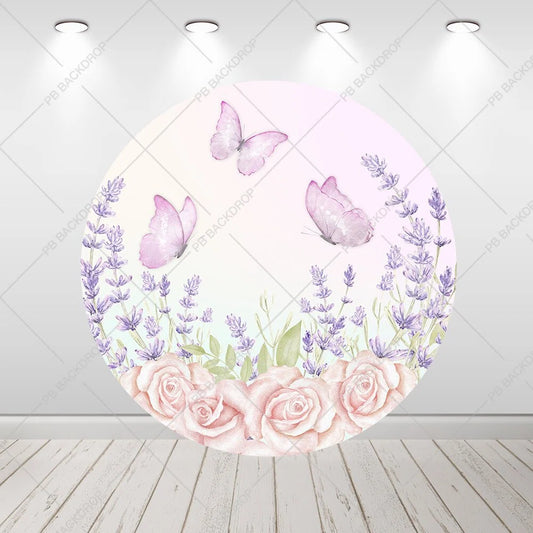 Lavender Butterfly Girls Birthday Baby Shower Round Backdrop