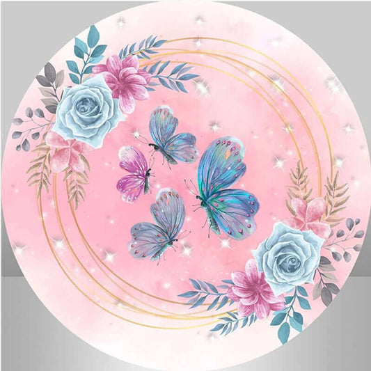 Butterfly Floral Pink Blue Baby Shower Round Backdrop