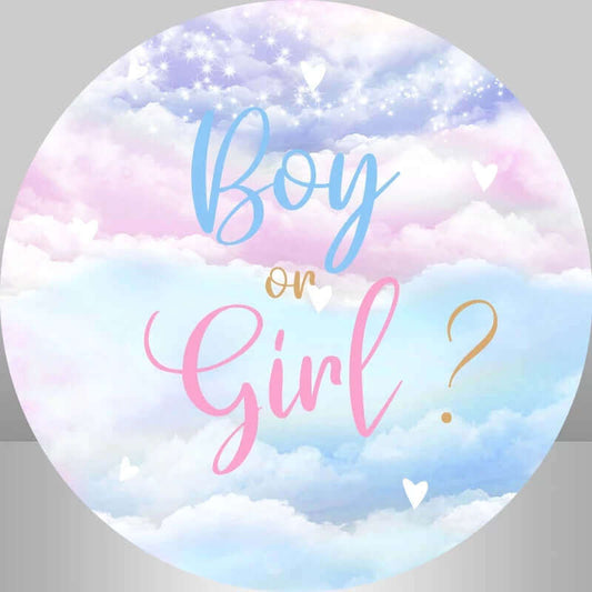 Blue Pink Clouds Boy or Girl Gender Reveal Round Backdrop Cover