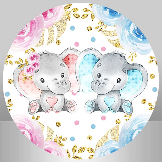 Elephant Flowers Boy or Girl Gender Reveal Round Circle Backdrop