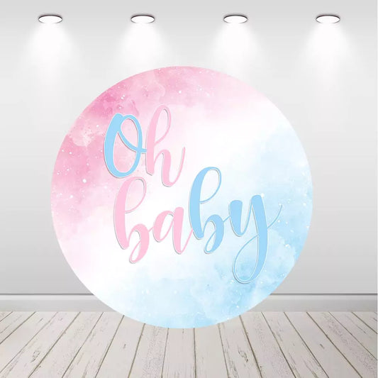 Blue Pink Boy or Girl Gender Reveal Round Backdrop Cover