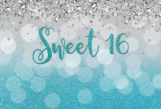 Diamond Blue Bokeh Sweet 16 Birthday Party Backdrop Adult Birthday Photography Background
