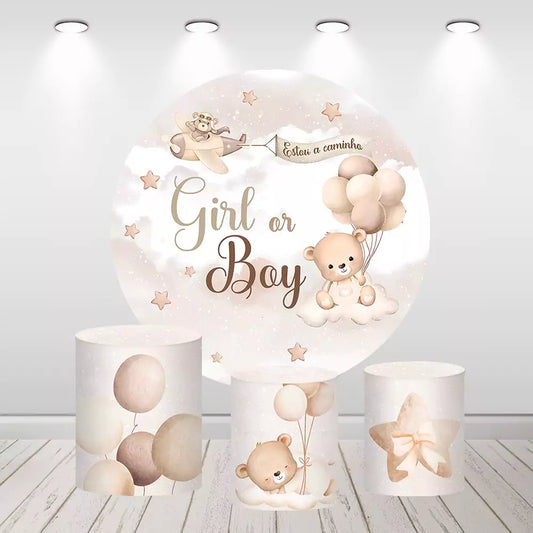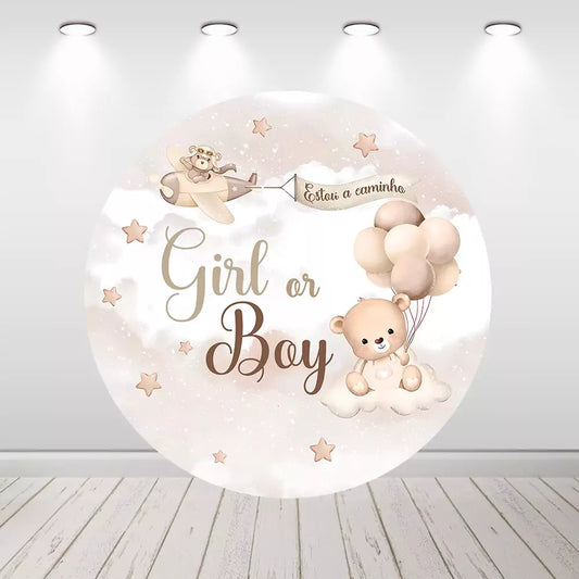 Bear Gender Reveal Boy or Girl Round Backdrop