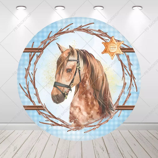 Blue Cowboy Horse Round Backdrop for Boy Birthday