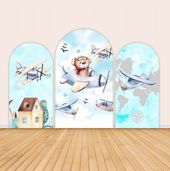 Pilot Bear Kids Baby Shower Birthday Party Arch Backdrop Cover