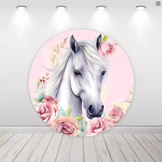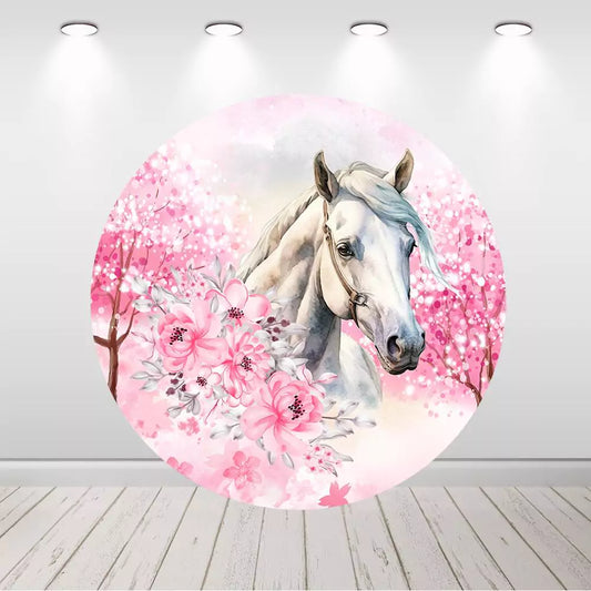 Horse Pink Flower Baby Shower Round Circle Backdrop Plinth Covers
