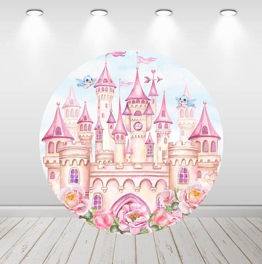 Pink Castle Princess Birthday Party Flowers Round Circle Backdrop