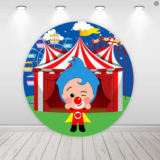 Plim Plim Circus Tent Kids 1st Birthday Baby Shower Round Backdrop