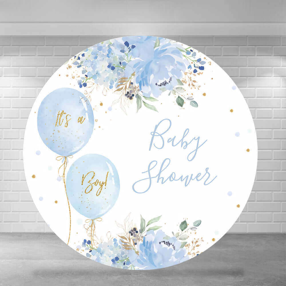 Celebrate your baby boy with this beautiful blue balloon and floral round backdrop.