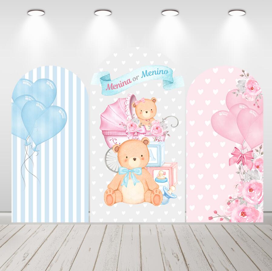 Customized Bear Gender Reveal Party Chiara Arched Backdrop Metal Frame