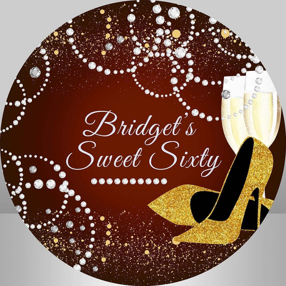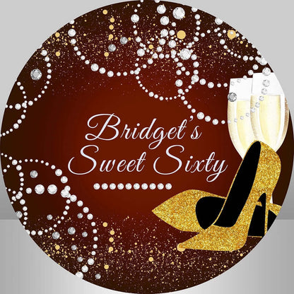 Gold Glitter Burgundy Wine High Heels Women Birthday Round Backdrop